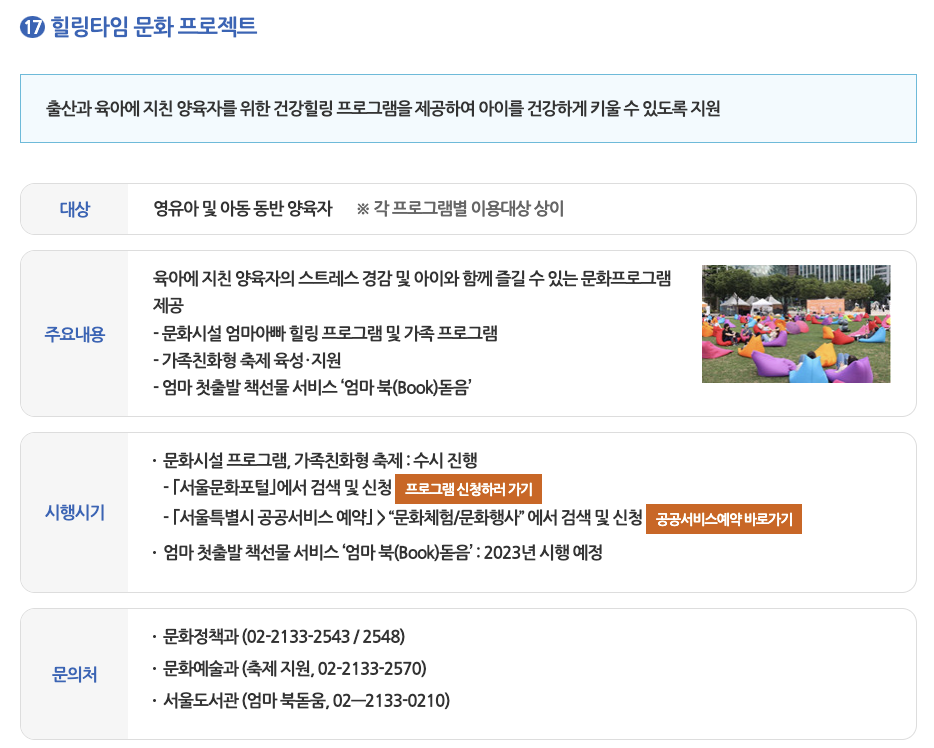 자세한 내용은 서울시 홈페이지 엄마아빠 행복프로젝트 페이지에서 확인 가능합니다.