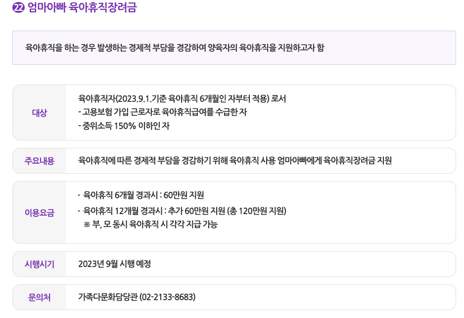 - 엄마아빠 육아휴직 장려금
