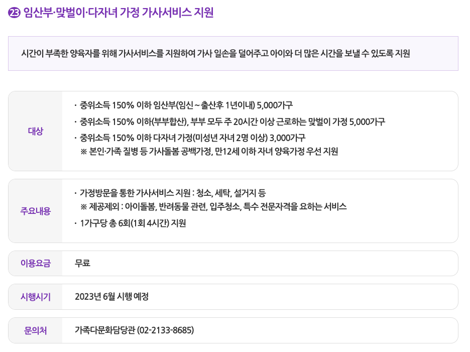 -임산부, 맞벌이, 다자녀 가정 가사서비스 지원