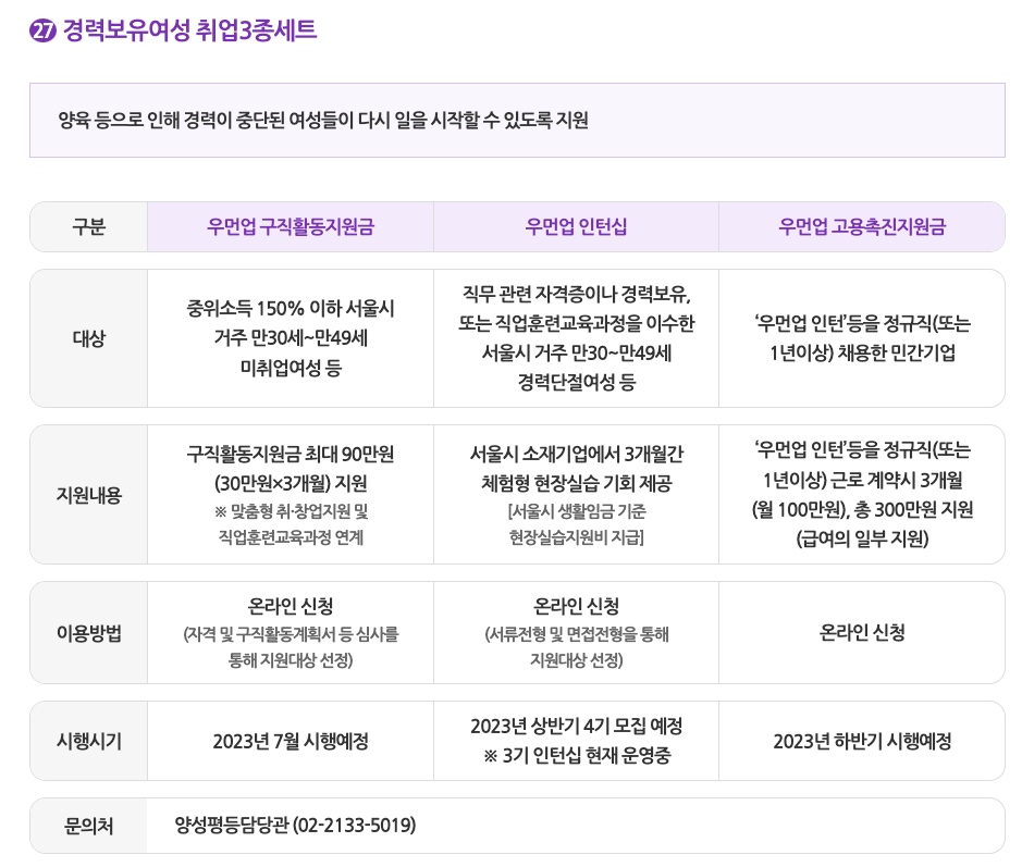 - 경력보유 여성 취업 3종세트
